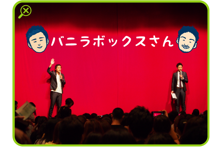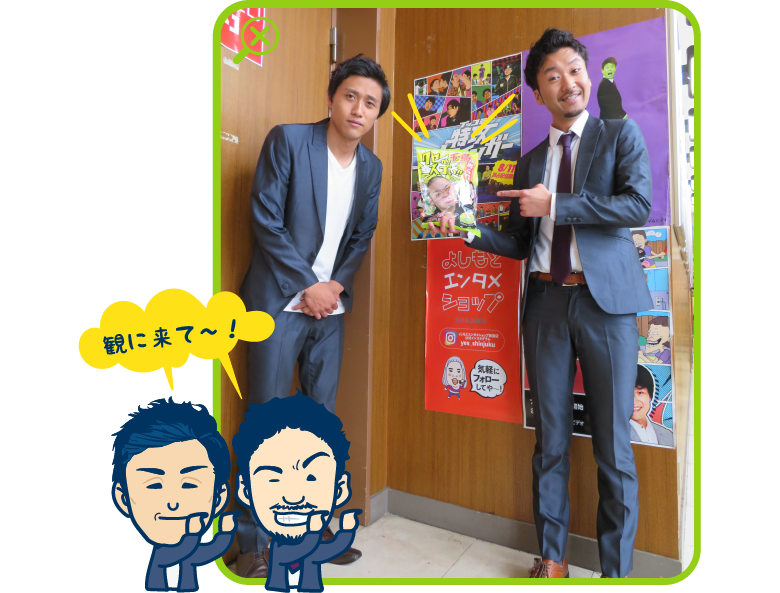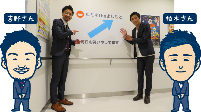 さて、今回館内をご案内いただくのは、「ルミネtheよしもと」で前説もやっていらっしゃる芸人さん「バニラボックス」の柏木さんと吉野さん。二人ともイケメンで背が高い!