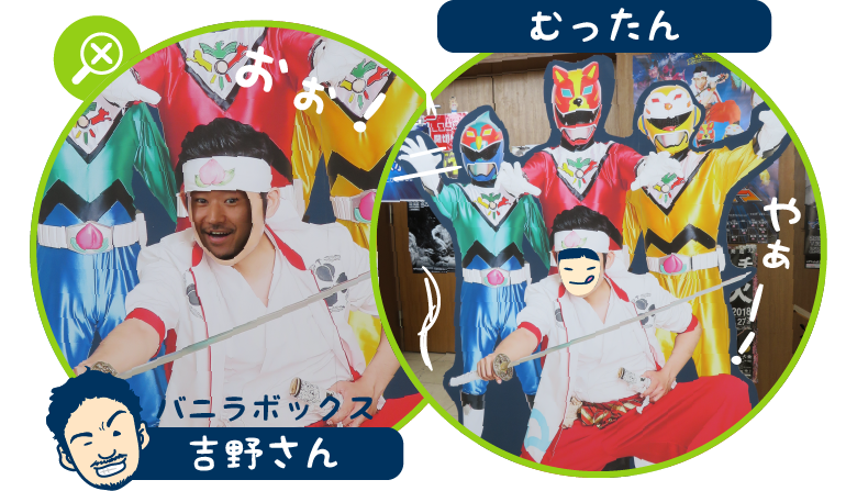 バニラボックス吉野さんとむったんに「ももたろう」になってもらいました。