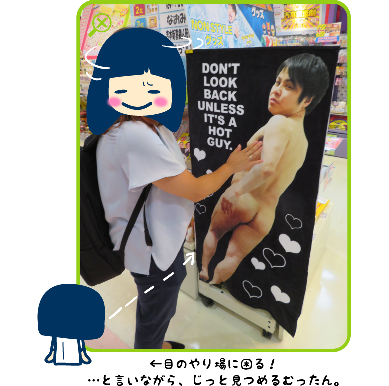 せっかくだからこの写真をキャンペーングッズに使おうと思って、「この写真を使ったもので何を作れますか」って聞いたら、「バスタオルがいいんじゃないか」って。作るんやったら等身大で作ってくれって頼んだんです。その代わり高くなるとは言われたけど。