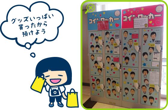 ・トイレ前には少しですが、ロッカーもあります。劇場の受付では荷物のお預かりはしておりませんが、エンタメショップではお預かりしておりますのでご相談ください。(有料のお預かりとなります)