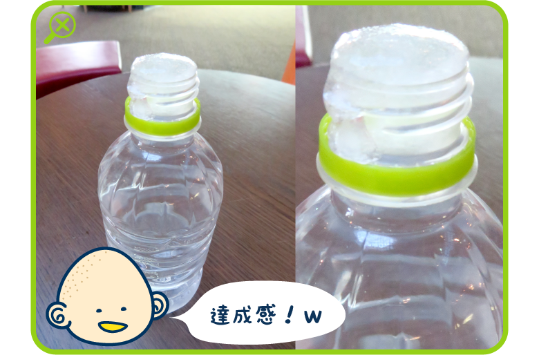 2日目の早朝、ごっちさんは”実験”と称してお水のペットボトルを外に置き、帰るまでに凍るのか実験を行いました。