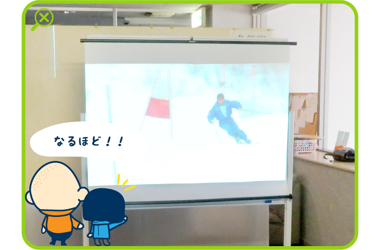 レッスン中には滑走の様子をビデオ撮影し、レッスン終了後にビデオを見ながら解説を行っています。
