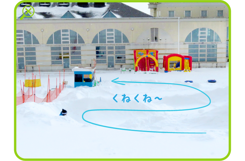 センターハウス目の前に位置するファミリーランドパークは、ソリやチュービングをはじめとしたアイテムやふわふわ遊具など、まだ滑ることができないお子さまの雪遊びデビューに最適な遊び場。