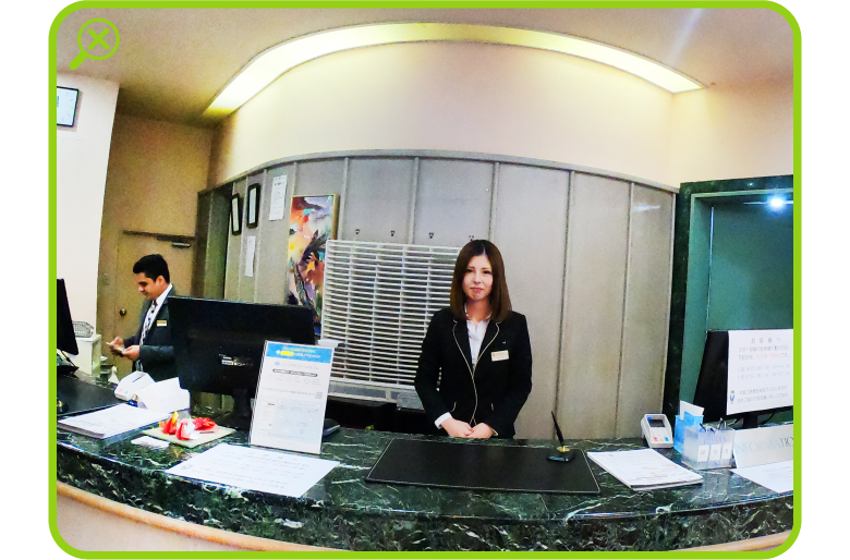 ホテル棟1Fロビーにはお部屋で使えるレンタル用品やアメニティが設置してあります。