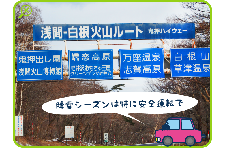 軽井沢駅→パルコールつま恋スキーリゾートまでは鬼押ハイウェイ経由で約42km、1時間ほど。