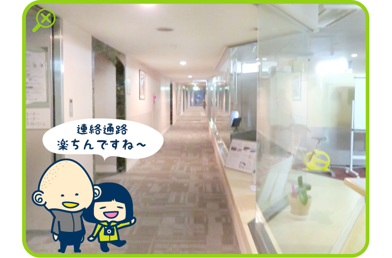 ホテル棟とセンターハウス棟は1Fと3Fに設置された連絡通路(とはいえすんごく近い)で行き来が可能になっています。